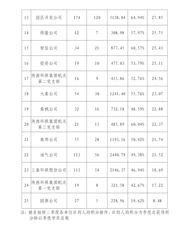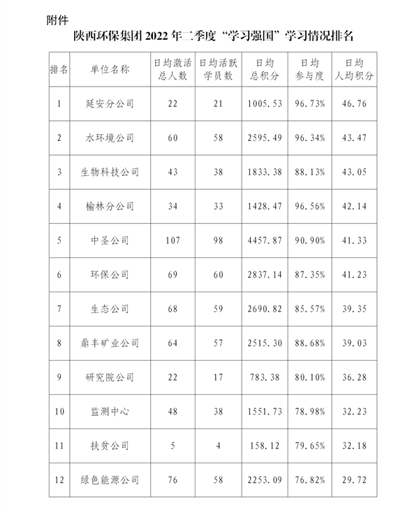 二季度,陕西DB真人旗舰集团整体平均加入度为69.34%,日均人均积分30.37分,日均活跃学员数914人。从学习情况统计来看,大部分党员学习积极性较强,整体加入度有所提高,排名靠前的单位要进一步牢固提升,再接再厉,连续发挥示范引领作用。但仍有部分排名恒久较后的单位对“学习强国”平台重视水平不敷,对党员的学习催促治理失之于松,国源公司、集团公司机关相关党支部、三秦DB真人旗舰股份公司的党员学习加入度较低,学习积极性不高,日均学习积分偏低,低分人数较多。希望排名靠后的单位要切实提高政治站位,将“学习强国”平台学用事情作为增强党内政治理论学习、下层党员培训的重要举措,连续深入推动学用治理事情,努力营造“比、学、赶、超”的浓厚学习气氛。